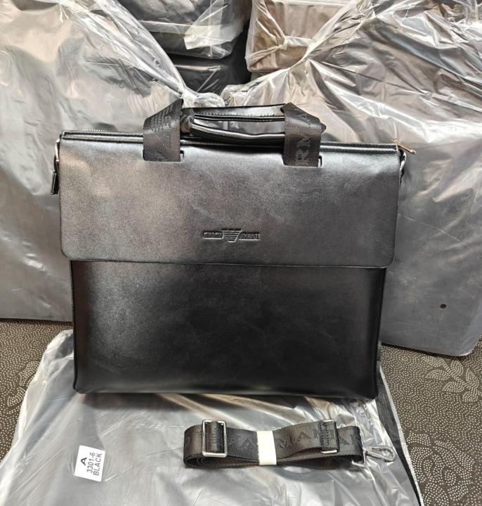 Emporio_Armani_Executive_Dual-Texture_Flap_Laptop_Bag_Black_(A-3301-6)